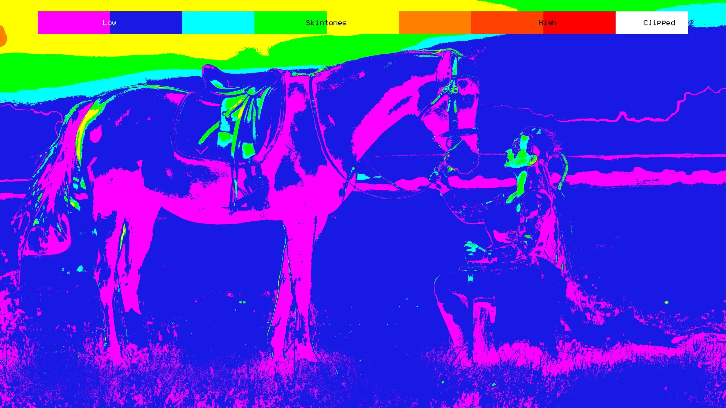 False-color exposure mapping shows brightness levels instantly. Identify clipped highlights, crushed shadows, and proper middle grey at a glance - without relying solely on scopes.